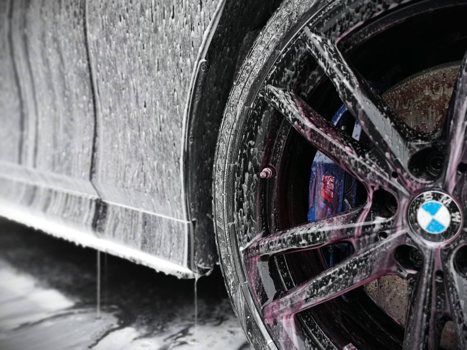 Durant le processus de préparation nous avons effectué un lavage complet suivi d'une décontamination chimique et mécanique des jantes et de la carrosserie.